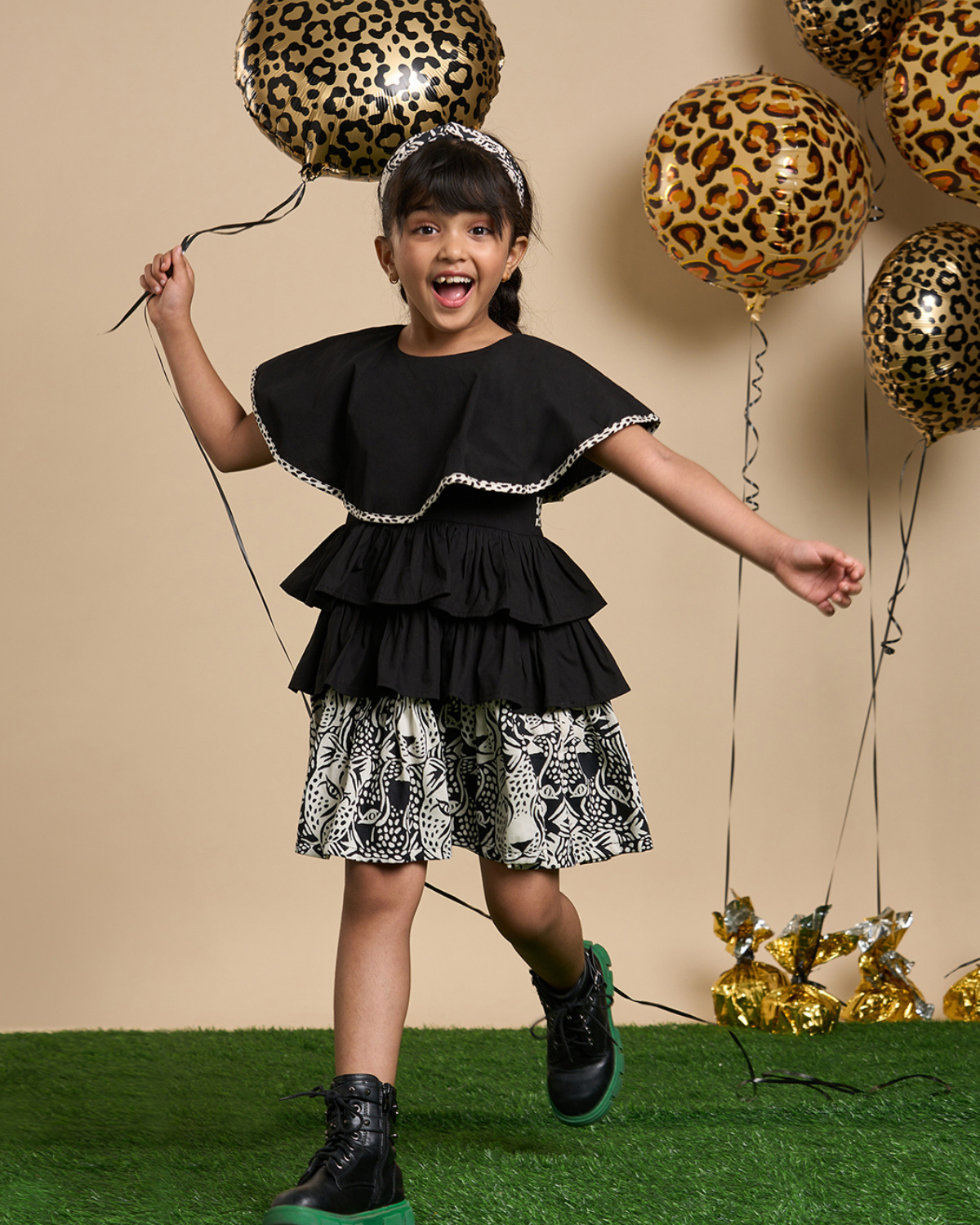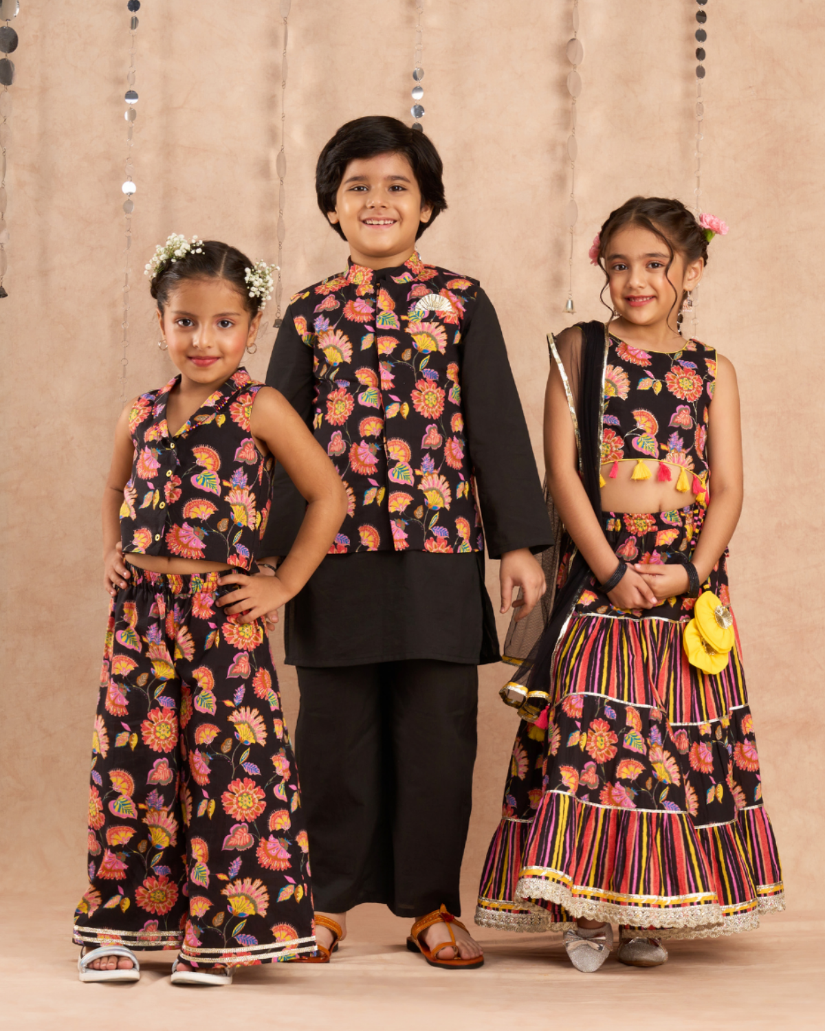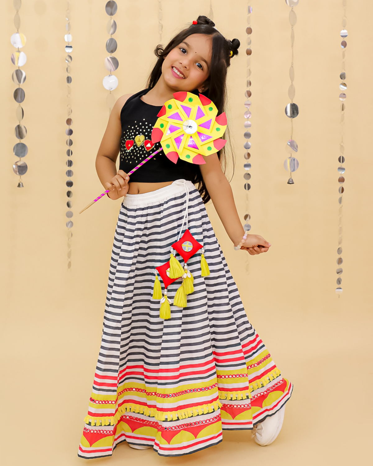 Chromatic Fusion Girls Black & White stripe Hand embroidery Lehanga Choli