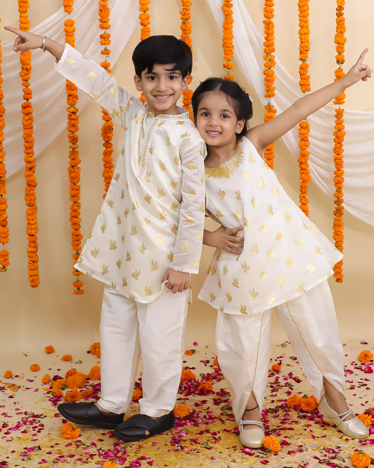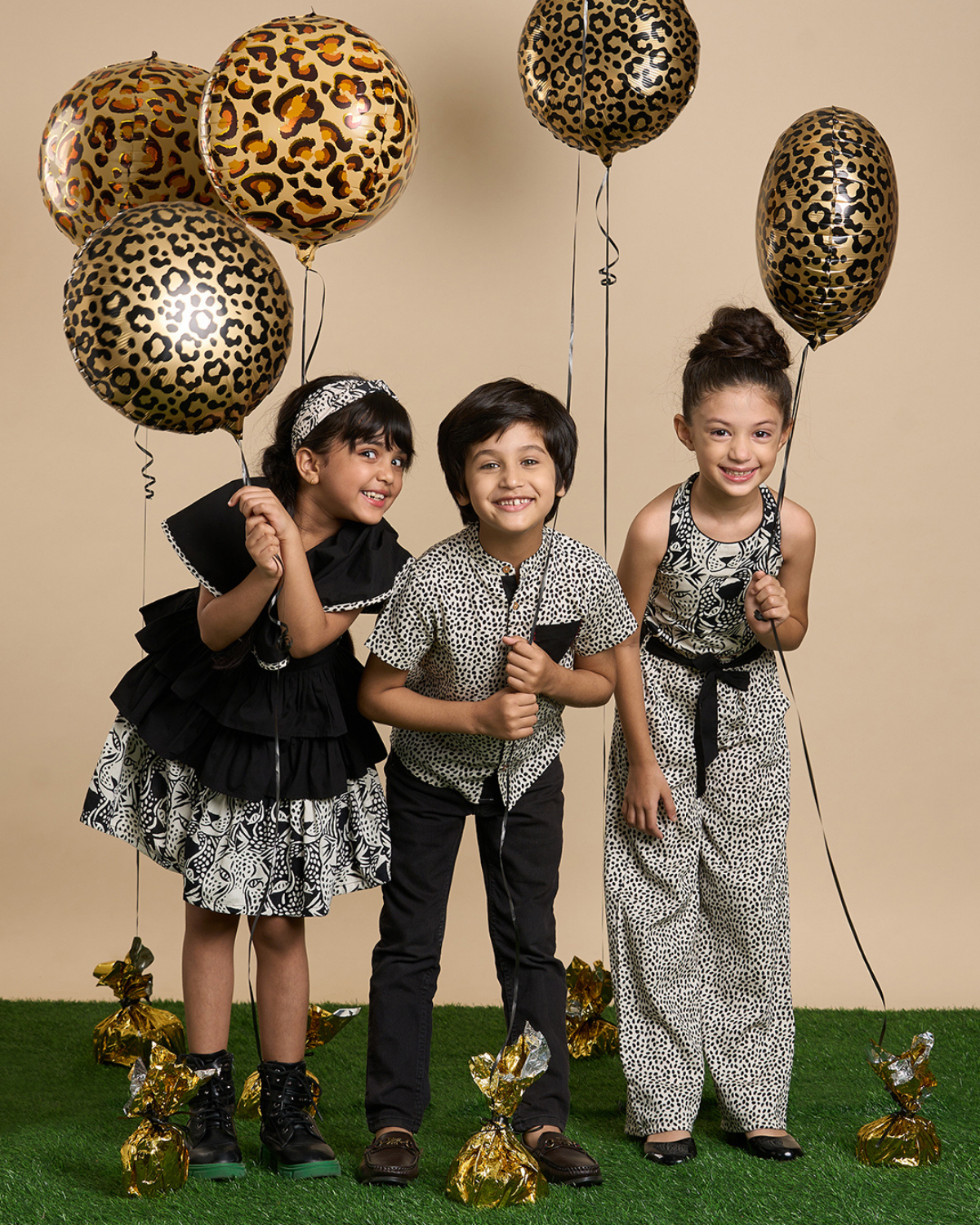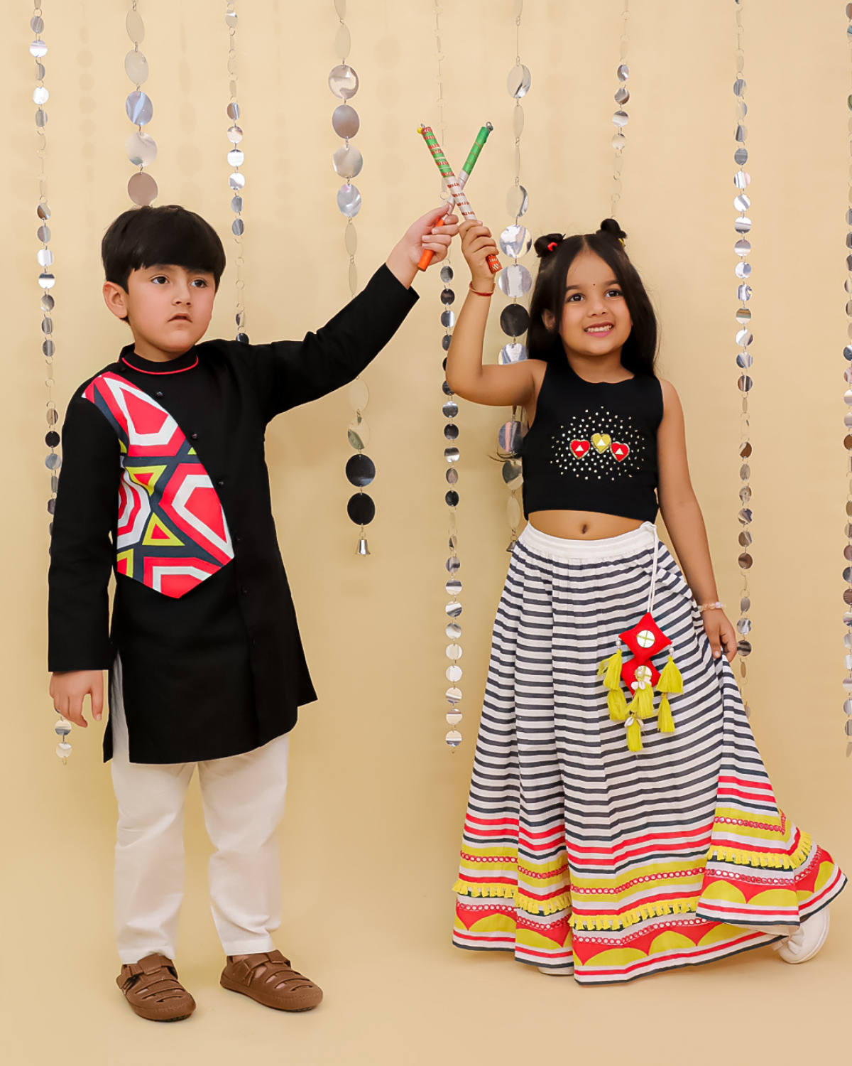 Chromatic Fusion Boys Black & White stripe Kurta Pant set