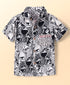 Crafted from 100% cotton printed poplin, this shirt is soft, breathable, and perfect for all-day wear. The front button closure makes it easy to put on, while the stand-up collar and half sleeves add a trendy touch. The straight cut ensures a regular, comfortable fit, while the jungle-inspired design adds a playful element to his wardrobe.